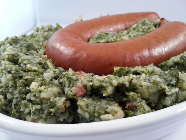 Op een moment vertelde Cornelis dat hij zoveel boerenkool had geoogst en ik zei ik heb nog een grote voorraad blikken aardappelpuree poeder als we dan daarbij een aantal rookworsten halen en die in 5 of 6 stukken snijden kunnen we die op een post tijdens de winterserie uitgeven.